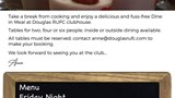 END OF LOCKDOWN DINE IN AT DOUGLAS RUGBY CLUBFRIDAY 19TH JUNE FOOD SERVED 4PM-9PMSATURDAY 20TH JUNE FOOD SERVED 4PM-9PM TABLES OF TWO/FOUR/SIXINSIDE & OUTSIDEALL TABLES … view